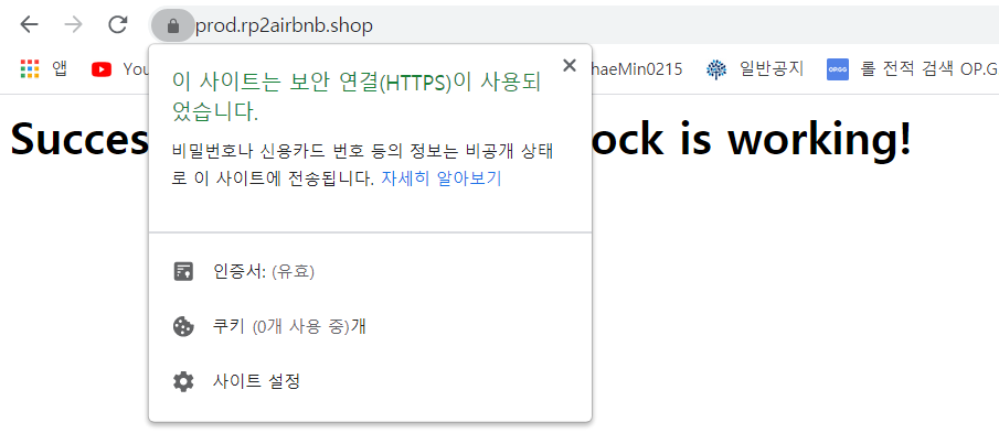 그 다음 도메인으로 접속을 해보면 보안연결이 잘 된것을 확인할 수 있다.