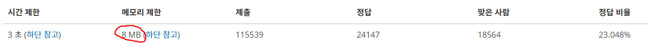 메모리 제한이 8MB으로 배열을 사용하는 계수정렬(counting)을 사용해야한다.